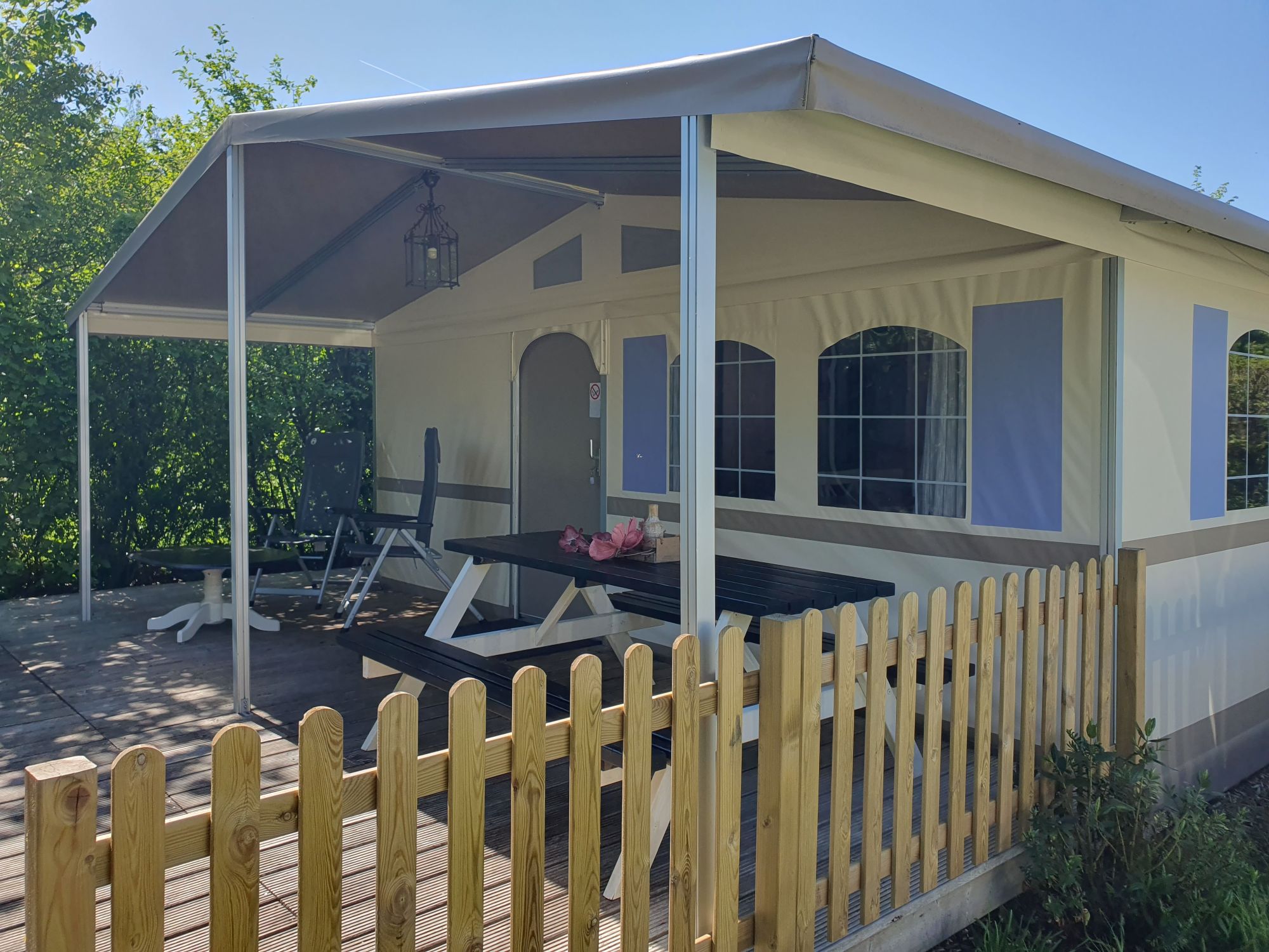 Lodgetent plaatsnummer 57 is te koop. Vraagprijs € 22.500,=